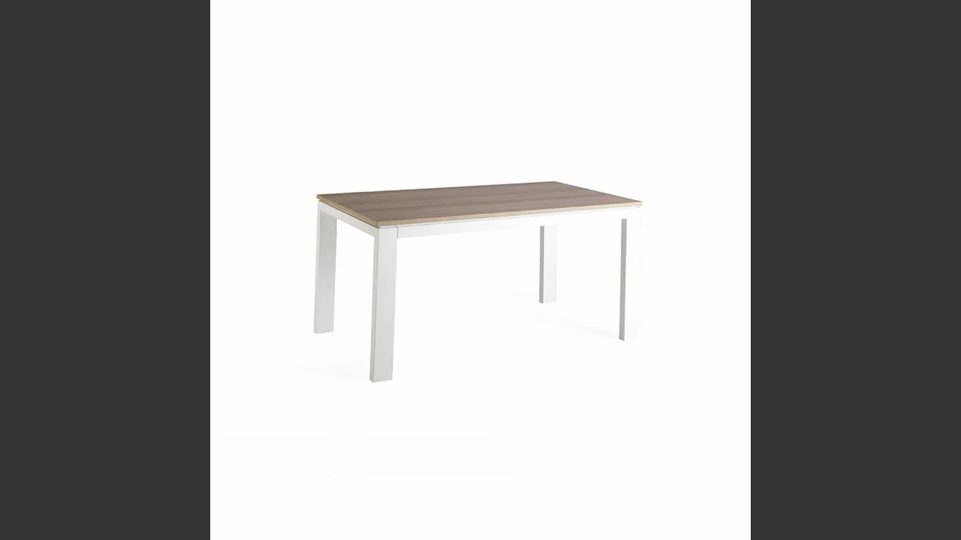 Tavolo allungabile con tre prolunghe da 45 cm. Struttura fusto in metallo rivestita in legno e gambe in legno verniciato. Piano in Laminato sp. 2 cm.