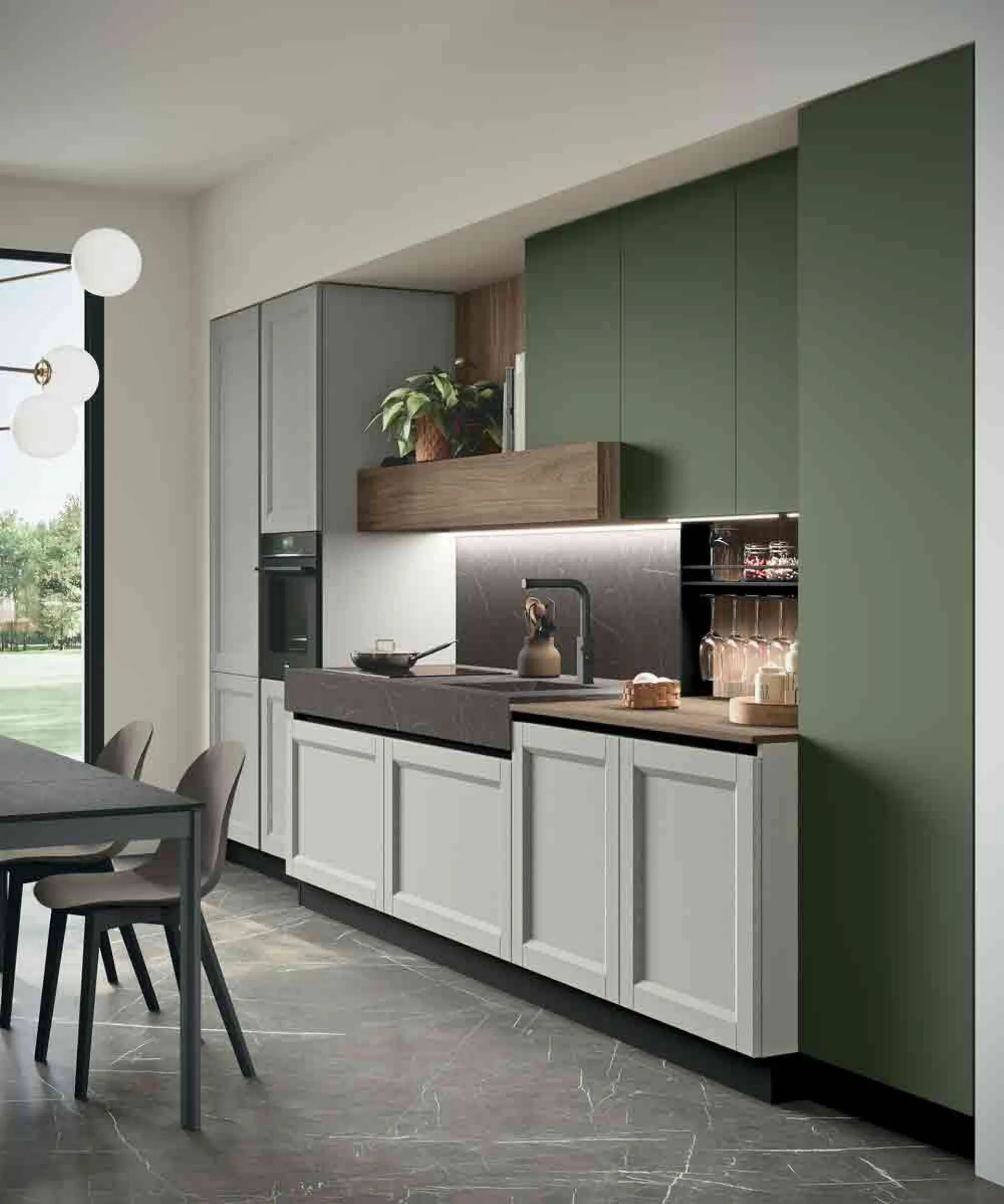 Beverly, un modello senza tempo che si arricchisce ora di ulteriori dettagli. Sfumature di nuovi colori dalla spiccata personalità entrano a far parte della proposta progettuale, dai colori neutri a quelli più vivaci per una cucina al passo con i tempi. Altra novità è la maniglia Zen caratterizzata dalla forma squadrata e dalla parte frontale rigata, disponibile in tre varianti, nero, titanio e bronzo.