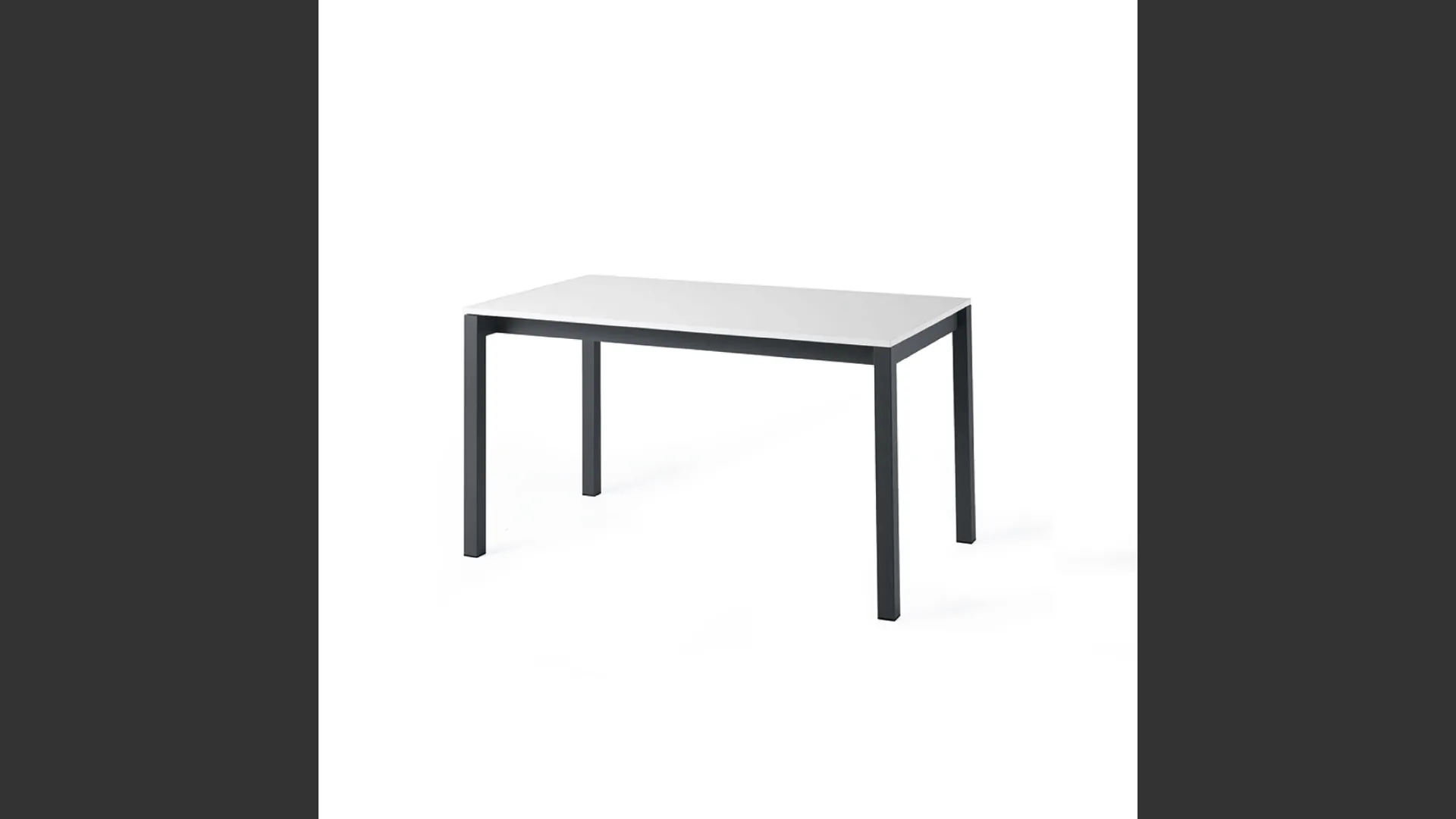 Tavolo allungabile con due prolunghe da 40 cm. Fusto e gambe in metallo verniciato. Piano in Laminato o Fenix sp. 2 cm.