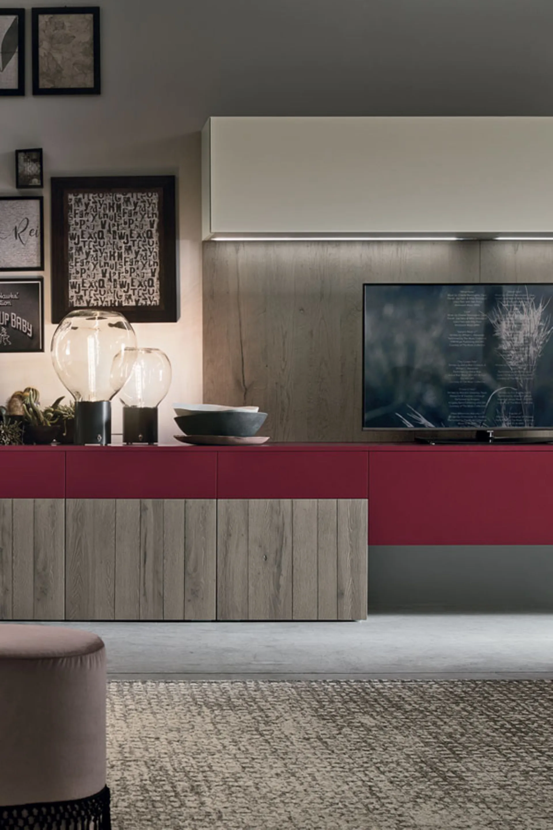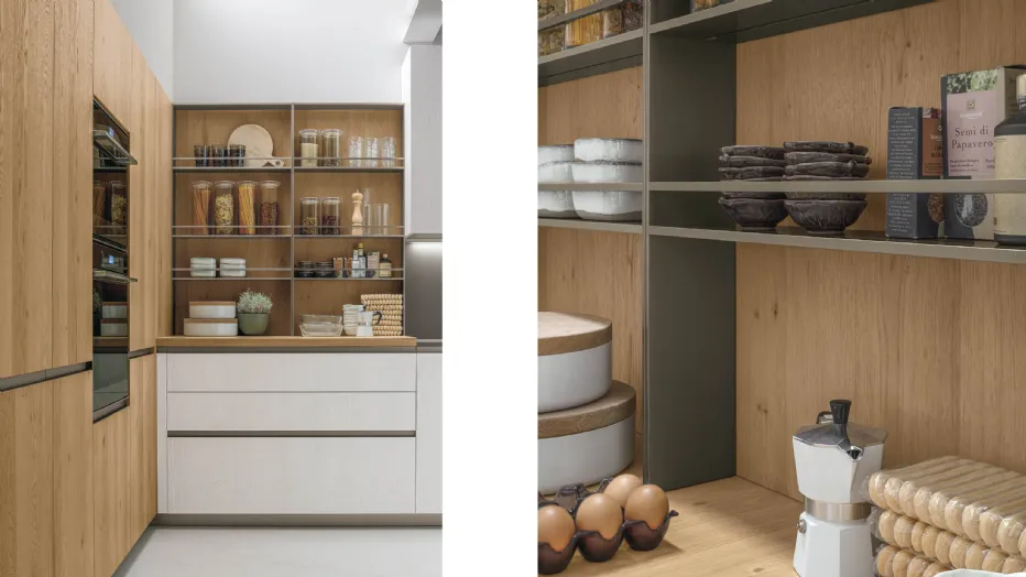 Le pareti attrezzate Stosa rappresentano l’evoluzione naturale delle cucine del brand, con cui condividono stile, materiali e finiture. Ogni elemento nasce per dare continuità visiva e funzionale agli ambienti della casa, creando un perfetto equilibrio tra estetica e praticità. Le basi sospese si trasformano in eleganti mobili porta TV, mentre vani chiusi e pensili diventano spazi contenitivi ordinati e versatili. I top e gli schienali, declinati nelle stesse finiture delle cucine, valorizzano la composizione e definiscono il carattere del living. Le vetrine, con ante in vetro e illuminazione interna, aggiungono un tocco di raffinatezza e leggerezza, perfette per esporre libri, oggetti decorativi o collezioni personali. Il risultato è una zona giorno coerente e armoniosa, che interpreta lo stile Stosa in chiave contemporanea, unendo comfort, design e funzionalità.
