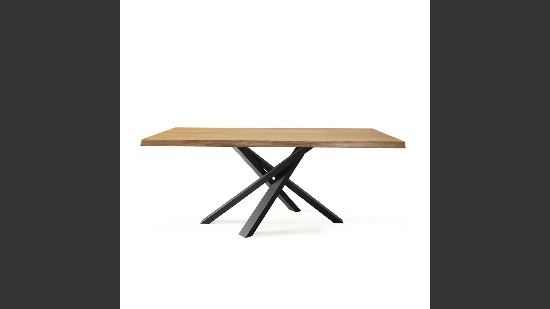 Tavolo fisso. Basamento in metallo verniciato. Piano impiallacciato sp. 5 cm.