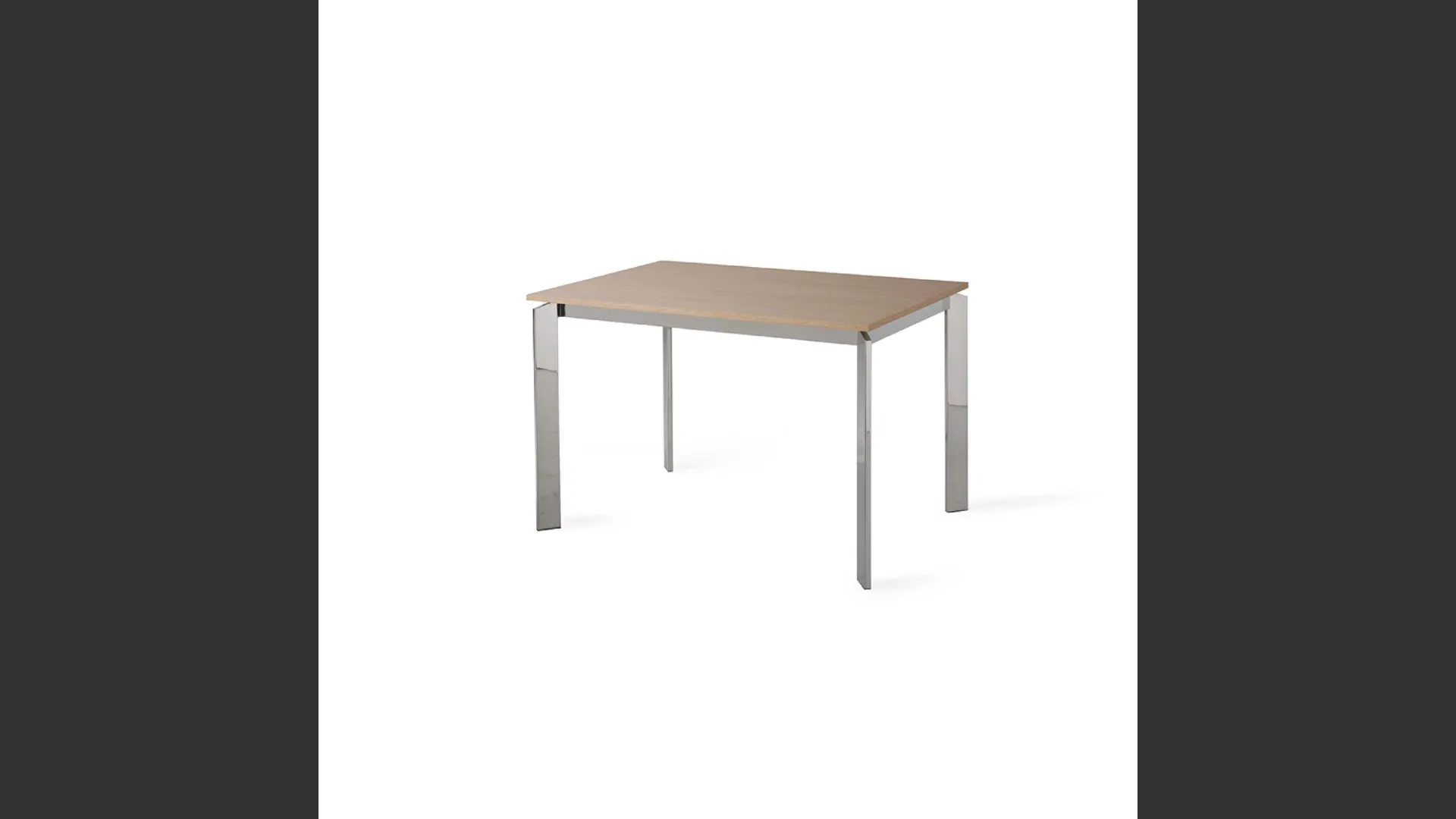 Tavolo allungabile con due prolunghe da 50 cm. Struttura in metallo cromato. Piano in Laminato sp. 2 cm.