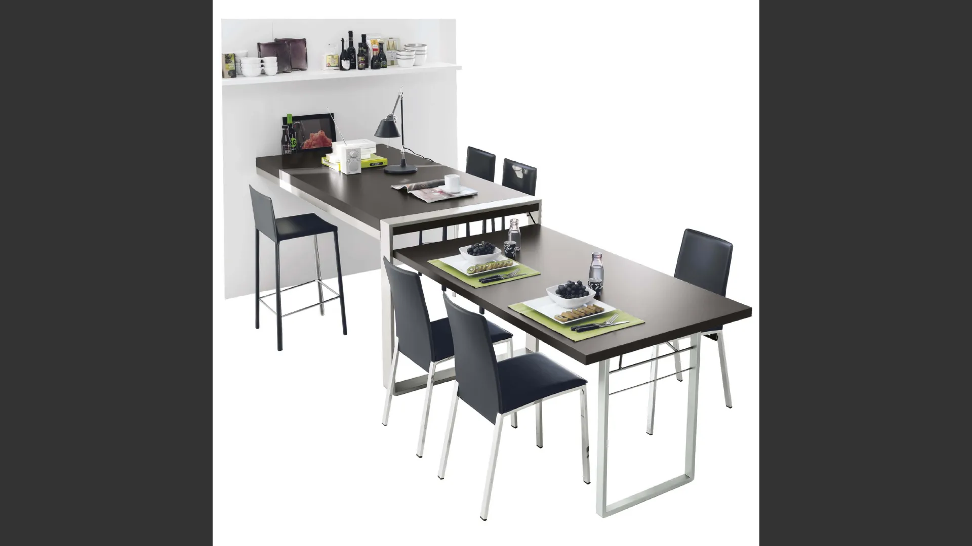 Tavolo estraibile lunghezza 160 o 190 cm. Fusto e gambe brill. Piano in Laminato.