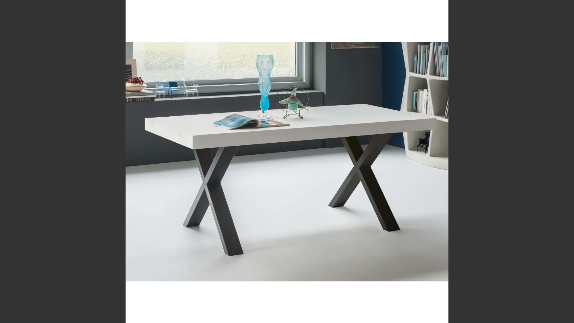 Tavolo allungabile con prolunghe. Fusto e gambe in ferro, Piano in Nobilitato TSS.